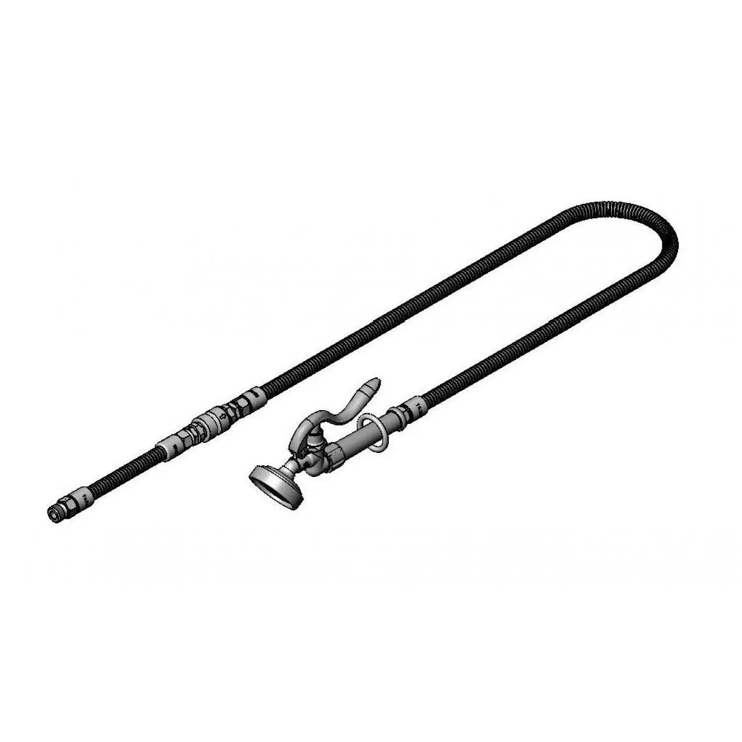 Upgrade System Quality with T&S Brass, B-0950-VB, Faucets with Spray Assemblies. This high-quality commercial restaurant faucet is designed to enhance your kitchen's efficiency and productivity. With its 1.15 GPM angled spray valve, you can easily rinse dishes, utensils, and produce, saving you valuable time and effort. The 72" overall length flexible stainless steel hose provides excellent reach and maneuverability, allowing you to clean hard-to-reach areas with ease. The heat-resistant handle ensures safe and comfortable operation, while the hold-down ring keeps the hose securely in place when not in use. Additionally, the vacuum breaker prevents backflow contamination, ensuring the safety and purity of your water supply. Trust T&S Brass, a reputable vendor known for their durable and reliable products, to deliver exceptional performance and longevity. Upgrade your restaurant's system quality with T&S Brass, B-0950-VB, Faucets with Spray Assemblies.