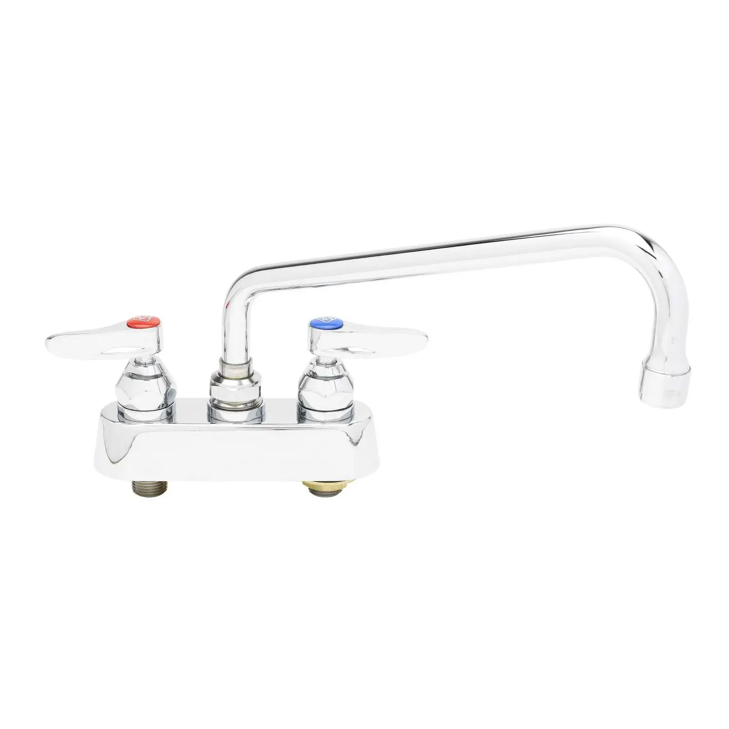 Ensure Consistent Performance with the T&S Brass B-1112 Manual Faucet. Designed specifically for commercial restaurant use, this deck mount faucet is a reliable choice for any busy kitchen. With its 4" centers and 10" swing nozzle, this faucet provides easy access to water wherever it's needed. The lever handles offer precise control over water flow and temperature, ensuring efficient operation. The chrome plated brass body not only adds a sleek look to your sink area but also ensures durability and longevity. This faucet is certified to meet ASME A112.18.1/CSA B125.1, NSF 61-Section 9, and NSF 372 standards, guaranteeing its safety and quality. Additionally, it meets ADA ANSI/ICC A117.1 requirements, making it accessible for all users. Upgrade your restaurant's kitchen with the T&S Brass B-1112 Manual Faucet and enjoy consistent performance day after day.