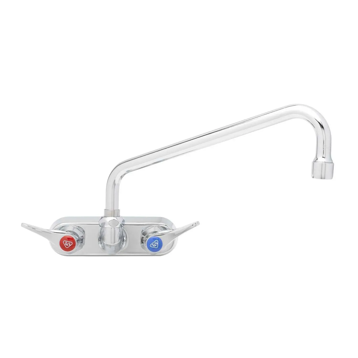 Enhance Operational Safety with the T&S Brass B-1117-CR Manual Faucet. Designed specifically for commercial restaurant use, this 4" workboard faucet is wall-mounted for convenience and efficiency. The chrome-plated brass body ensures durability and longevity, making it perfect for high-volume kitchens. The 10" swing nozzle with a 2.2 GPM aerator provides ample reach and water flow, allowing for easy filling of pots and pans. The lever handles offer precise control over water temperature and flow, ensuring a safe and comfortable experience for your staff. With ceramic cartridges and check valves, this faucet prevents leaks and drips, reducing water waste and maintenance costs. Certified to meet ASME, CSA, NSF, and ADA requirements, you can trust the quality and reliability of this T&S Brass faucet. Upgrade your restaurant's operational safety with the B-1117-CR Manual Faucet.