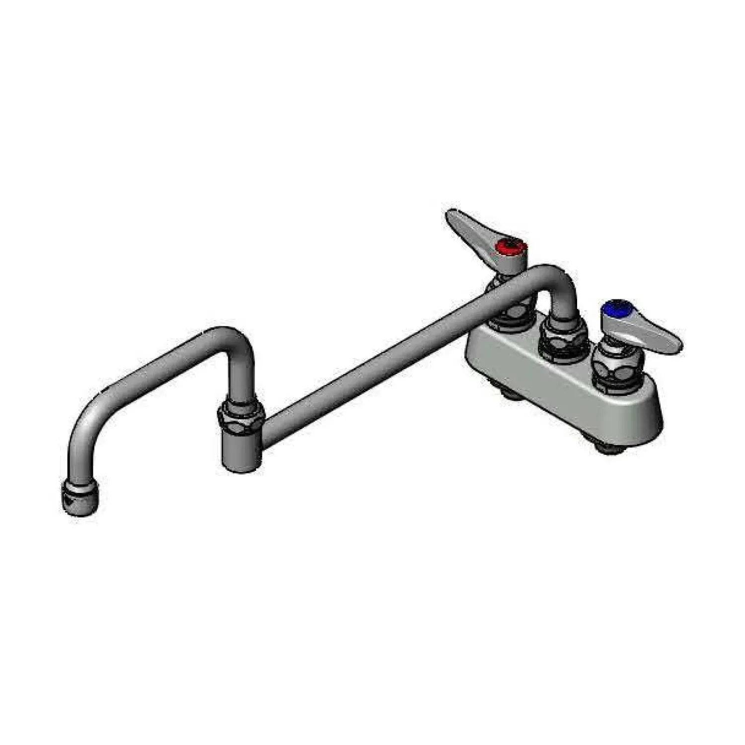 Facilitate Equipment Use with T&S Brass, B-1130, Manual Faucets. This deck mount workboard faucet is designed to enhance efficiency in commercial restaurant settings. With its 3-1/2" centers, it provides a convenient and accessible water source for various equipment. The 18" double-joint nozzle offers flexibility and ease of use, allowing for precise water flow control. The lever handles ensure effortless operation, even during busy periods. Made with a chrome-plated brass body, this faucet is not only durable but also adds a sleek and professional look to any work area. It is certified to meet ASME A112.18.1/CSA B125.1, NSF 61-Section 9, and NSF 372 standards, ensuring its safety and quality. Additionally, it meets ADA ANSI/ICC A117.1 requirements, making it accessible for all users. Upgrade your restaurant's equipment with the T&S Brass B-1130 Manual Faucet for improved functionality and reliability.