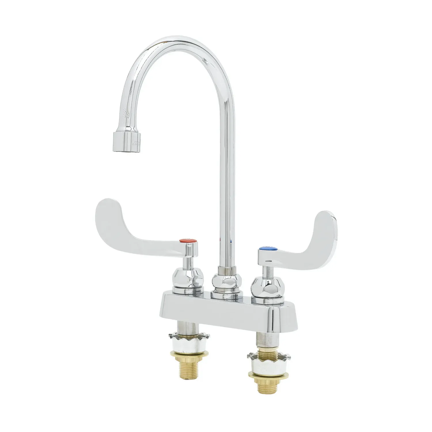 Optimize Equipment Performance with T&S Brass, B-1141-XSCR4V05, Manual Faucets. This workboard faucet is designed specifically for commercial restaurant use, ensuring efficient and reliable performance. The 4" deck mount allows for easy installation on any work surface, while the 6" swivel gooseneck provides flexibility and convenience. The 0.5 GPM vandal-resistant outlet ensures water conservation without compromising on functionality. With its chrome-plated brass body and ceramic cartridges with check valves, this faucet is built to withstand the demands of a busy restaurant kitchen. The 4" wrist action handles are designed for easy operation and are resistant to vandalism. Certified to ASME A112.18.1/CSA B125.1, NSF 61-Section 9, and NSF 372, this faucet meets all necessary standards for commercial use. Upgrade your restaurant's equipment with the T&S Brass B-1141-XSCR4V05 and experience enhanced performance and durability.