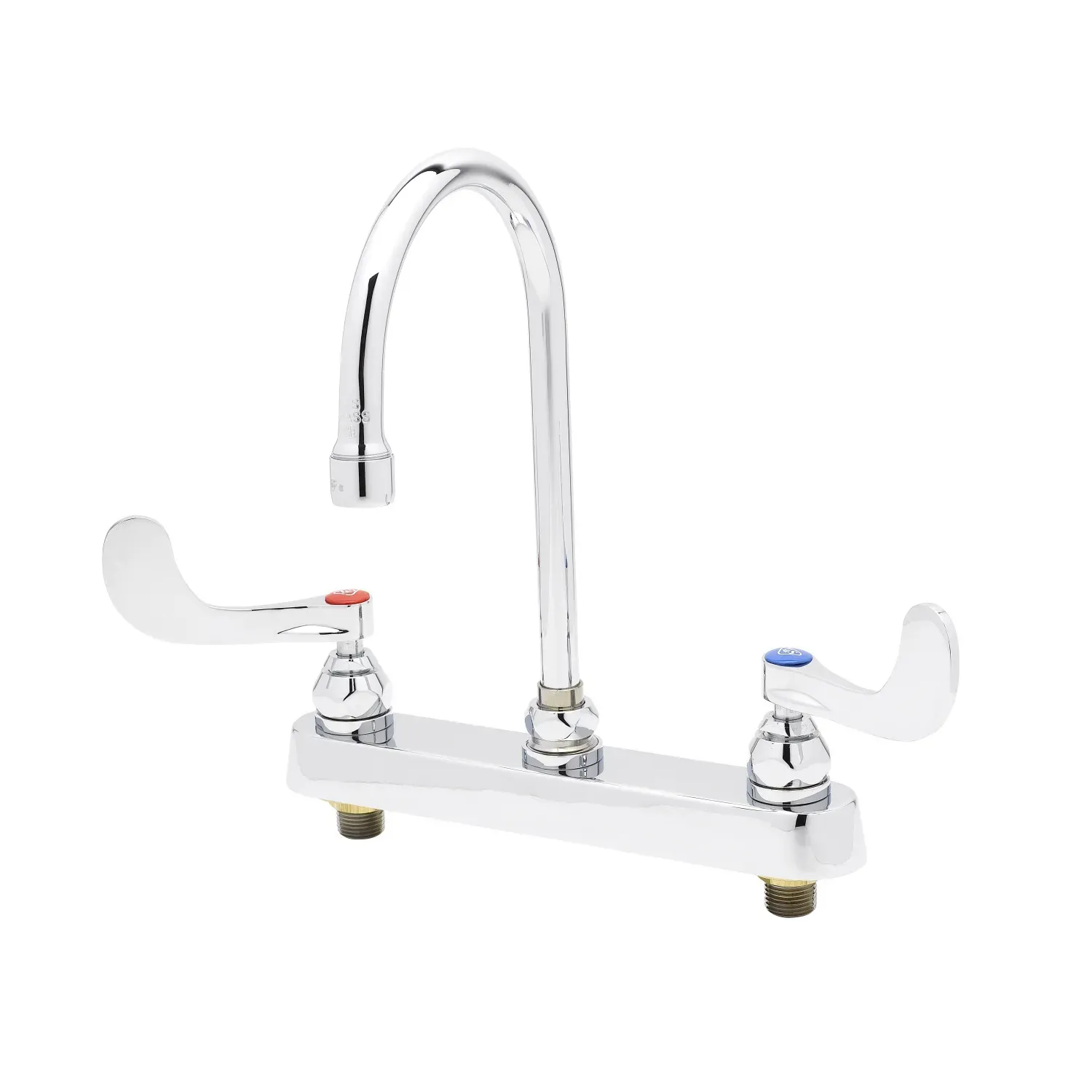 Enhance Operational Safety with T&S Brass, B-1142-04, Manual Faucets. This 8"c/c Deck Mount Workboard Faucet is designed to optimize efficiency and safety in commercial restaurant settings. With its 4"Wrist Action Handles, this faucet allows for easy control and precise water flow, reducing the risk of accidents and ensuring a smooth workflow. The 133X Swivel Gooseneck provides flexibility and convenience, allowing users to easily fill and clean large containers. Made with a chrome plated brass body, this faucet is not only durable but also adds a sleek and professional look to any work area. It is certified to meet ASME A112.18.1/CSA B125.1, NSF 61-Section 9, and NSF 372 standards, ensuring its quality and compliance with industry regulations. With its ADA ANSI/ICC A117.1 compliance, this faucet is accessible to all users. Trust T&S Brass for reliable and safe manual faucets in your commercial restaurant.