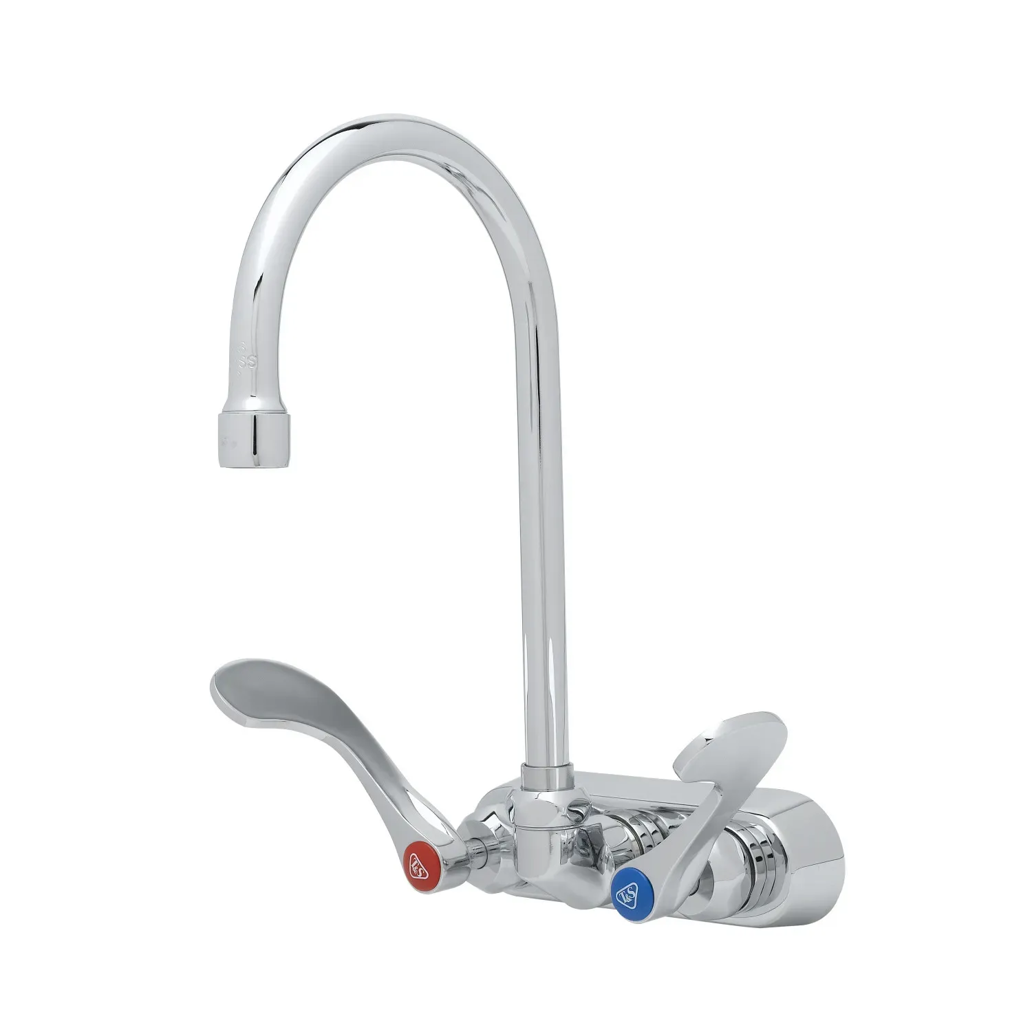 Upgrade Equipment Reliability with the T&S Brass B-1146-04-CR Manual Faucet. Designed specifically for commercial restaurant use, this wall-mounted faucet is a reliable and durable choice for any kitchen. The 4" centers and swivel gooseneck allow for easy maneuverability and efficient use of space. The CV-Ceramas construction ensures long-lasting performance, while the 4" handles provide precise control over water flow and temperature. With a chrome-plated brass body and ceramic cartridges with check valves, this faucet is built to withstand the demands of a busy restaurant environment. Certified to meet ASME A112.18.1/CSA B125.1, NSF 61-Section 9, and NSF 372 standards, it guarantees compliance with health and safety regulations. Upgrade your restaurant's equipment with the T&S Brass B-1146-04-CR Manual Faucet and experience enhanced reliability and efficiency in your kitchen.
