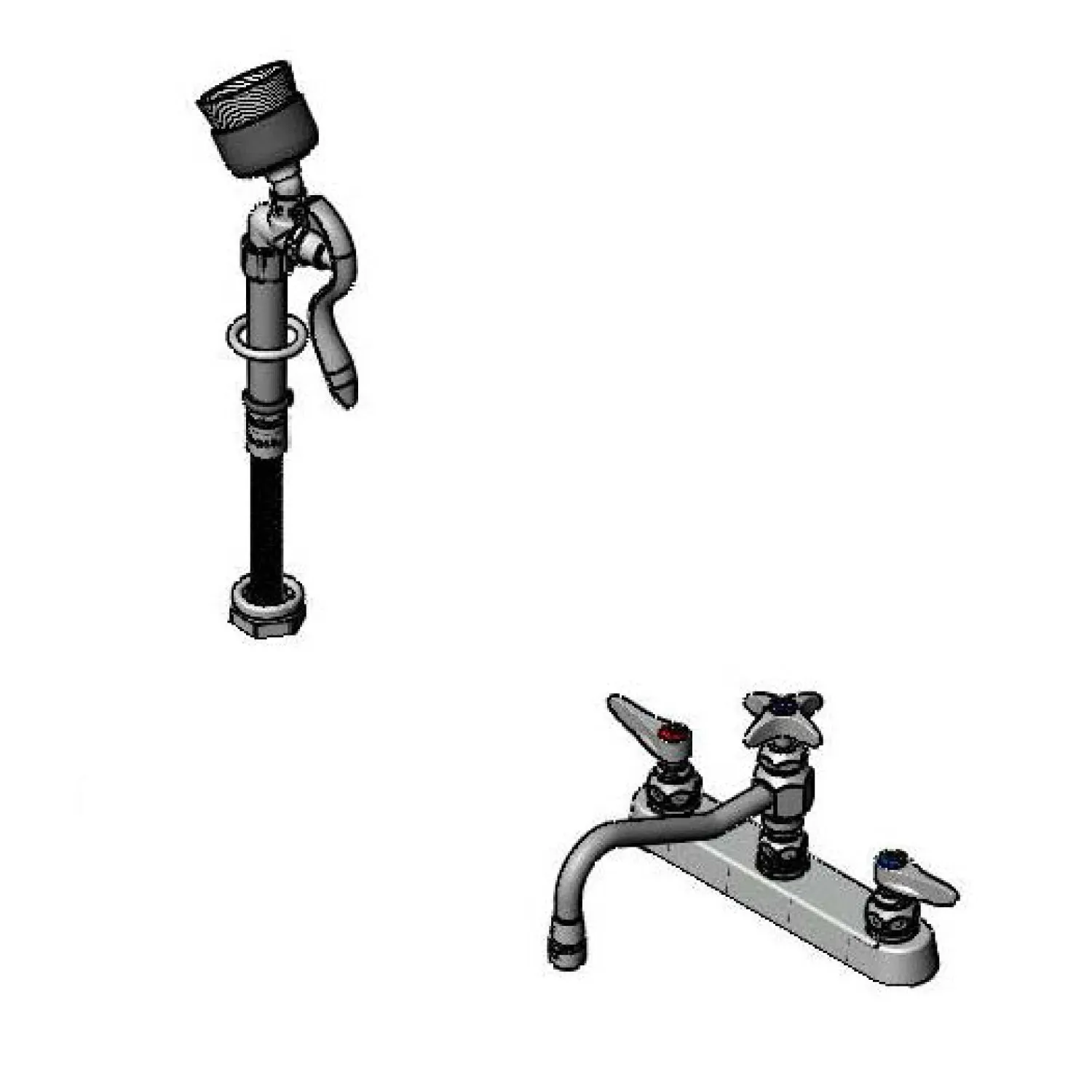 Ensure System Integrity with the T&S Brass B-1152-092A Manual Faucet. Designed specifically for commercial restaurant use, this deck mount faucet is a reliable choice for maintaining a smooth workflow in your kitchen. With 8" centers and an 8" swing nozzle with a diverter, this faucet offers flexibility and convenience. The faucet features a polished chrome plated brass body, ensuring durability and longevity in a busy restaurant environment. The swivel/rigid diverter valve with a 7 7/8" nozzle and 2.2 GPM aerator outlet allows for easy switching between different tasks. The lever handles provide precise control over water flow and temperature. Additionally, the faucet comes with a 1.15 GPM angled spray valve with a brush and a 44" flexible stainless steel hose, making it perfect for cleaning and rinsing dishes. Certified to ASME A112.18.1/CSA B125.1, NSF 61-Section 9, and NSF 372, this faucet ensures compliance with industry standards. Upgrade your restaurant's kitchen with the T&S Brass B-1152-092A Manual Faucet and experience enhanced efficiency and reliability.