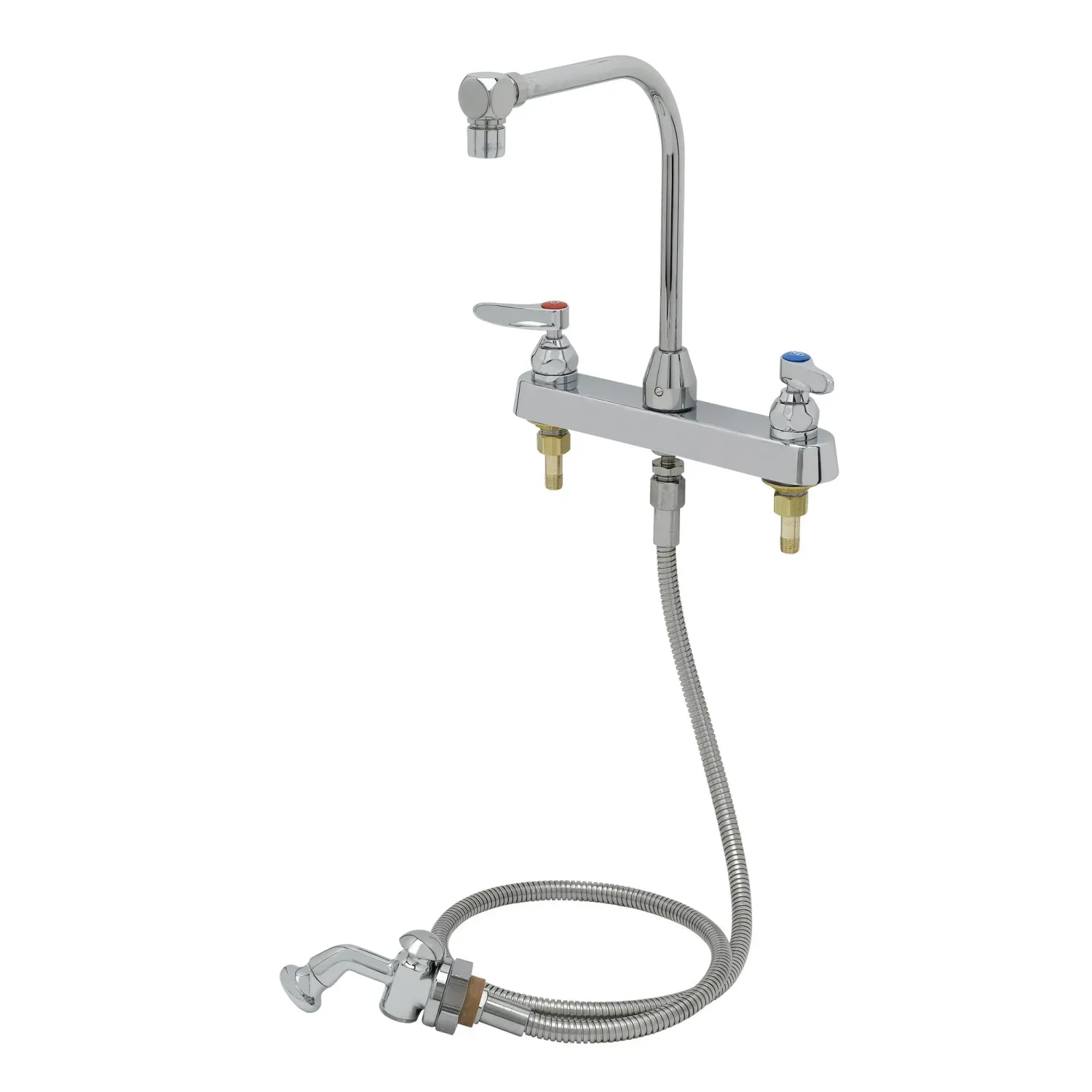 Upgrade Operational Reliability with the T&S Brass B-1173-101-48H Manual Faucet. Designed specifically for commercial restaurant use, this 8" deck mount faucet is a reliable and efficient choice for any kitchen. The high-arc gooseneck design allows for easy filling of large pots and pans, while the 2.2 GPM aerator ensures a steady flow of water. The compression cartridges with spring checks provide long-lasting durability, and the lever handles make it easy to control water temperature and flow. With 1/2" NPT male inlets and a chrome plated brass body, this faucet is built to withstand the demands of a busy restaurant kitchen. The included 48" flexible stainless steel hose and B-0101 spray valve with 2.2 GPM rosespray and deck flange add versatility and convenience. Certified to ASME A112.18.1/CSA B125.1, NSF 61-Section 9, and NSF 372, this T&S Brass faucet meets the highest standards of quality and safety. Upgrade your restaurant's operational reliability with the T&S Brass B-1173-101-48H Manual Faucet.
