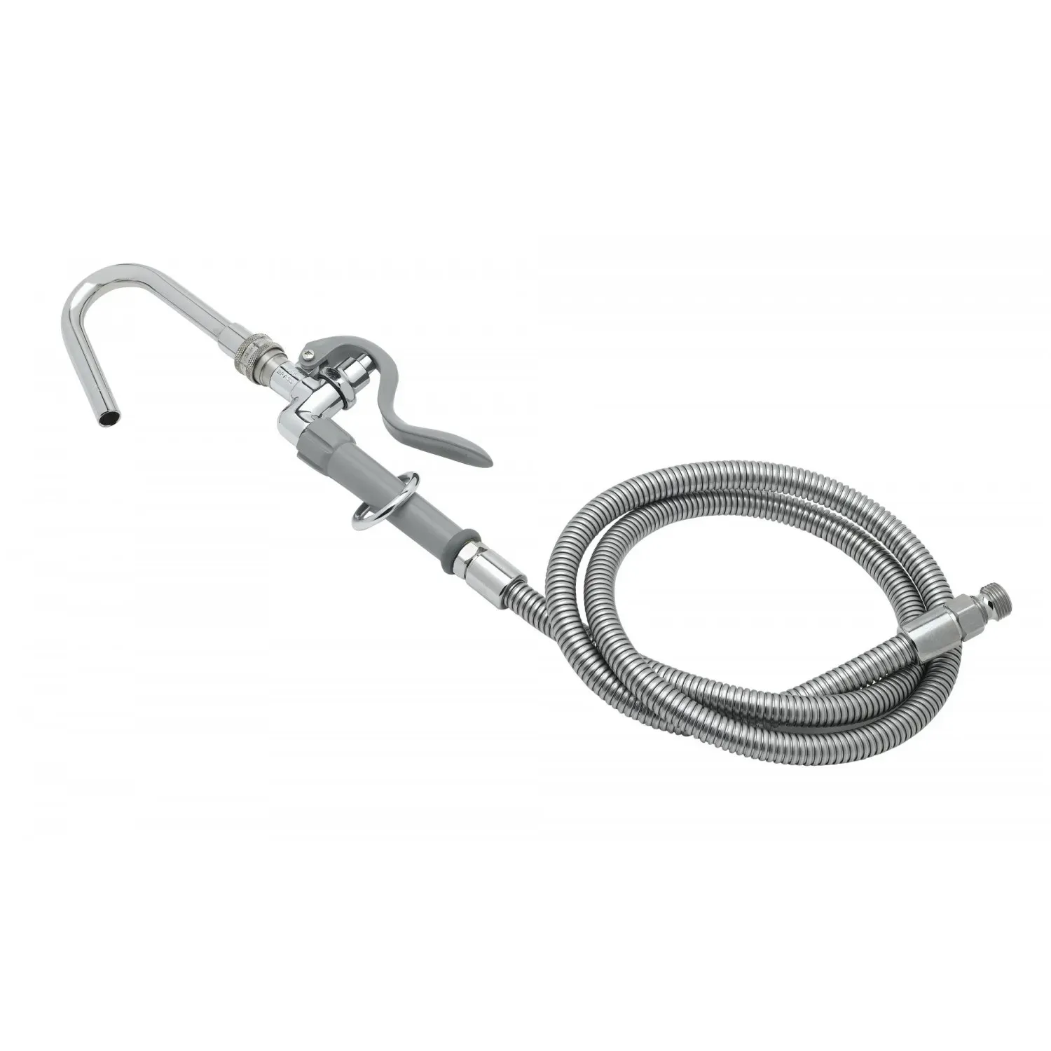 Facilitate Smooth Operation with the T&S Brass B-1413 Faucet, Kettle / Pot Filler. This versatile and reliable pot and kettle filler is designed to meet the demands of a busy commercial restaurant kitchen. The quick-connect hook nozzle allows for easy and efficient filling of pots and kettles, while the flexible stainless steel hose provides durability and maneuverability. With an automatic shut-off valve, you can trust that water will only flow when needed, saving both water and energy. The hook nozzle with quick disconnect plug and spray valve with quick disconnect socket offer convenience and ease of use. Whether you're filling large pots for soups and stews or kettles for hot beverages, this T&S Brass pot and kettle filler is the perfect addition to your restaurant kitchen. Trust in the quality and functionality of T&S Brass products to enhance your kitchen operations.