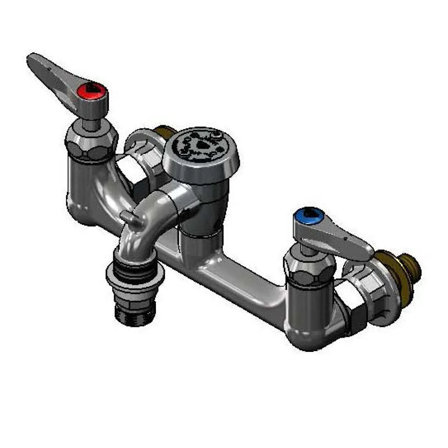 Secure Equipment Operation with T&S Brass, B-2271-POL-CR, Manual Faucets. This service sink faucet is designed to ensure reliable and efficient operation in commercial restaurant settings. With its polished chrome finish, this faucet adds a touch of elegance to any kitchen. The vacuum breaker feature prevents backflow, ensuring the safety of your water supply. The quick-disconnect outlet allows for easy attachment and detachment of accessories, making cleaning and maintenance a breeze. The ceramas cartridges with check valves provide smooth and precise control of water flow, while the lever handles offer ergonomic operation. Certified to meet industry standards, including ASME A112.18.1/CSA B125, NSF 61-Section 9, NSF 372, and ASSE 1001, this faucet guarantees compliance with health and safety regulations. Additionally, it meets ADA ANSI/ICC A117.1 requirements, ensuring accessibility for all users. Trust T&S Brass for secure and efficient equipment operation in your commercial restaurant.