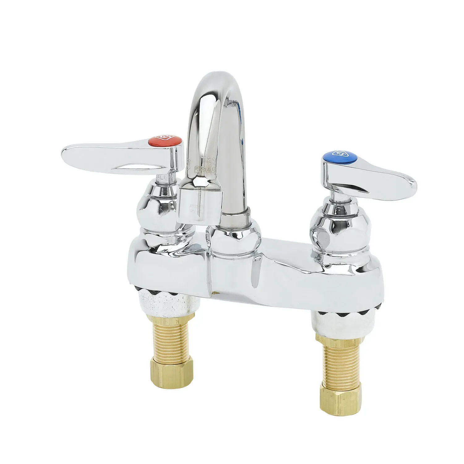 Upgrade System Quality with T&S Brass, B-2320, Manual Faucets. This 4" centerset mixing faucet is designed to enhance the efficiency and functionality of your commercial restaurant. With a swivel gooseneck and lever handles, this faucet offers easy maneuverability and precise control over water flow. The 2.2 GPM aerator ensures a steady and powerful stream of water, perfect for rinsing dishes and filling pots. The polished chrome plated brass body not only adds a touch of elegance to your kitchen but also ensures durability and longevity. The compression cartridges with spring checks provide reliable performance and prevent leaks. Certified to ASME A112.18.1/CSA B125.1, NSF 61-Section 9, and NSF 372, this faucet meets the highest industry standards for safety and quality. Upgrade your restaurant's system with T&S Brass, B-2320, Manual Faucets and experience enhanced efficiency and reliability in your kitchen.