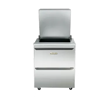 Experience superior performance with the Traulsen Dealers Choice Compact Prep Table Refrigerator. Designed specifically for the demanding environment of a restaurant kitchen, this versatile unit is perfect for streamlining your food preparation process. The compact one-section refrigerator, measuring 27 inches wide, features a low-profile flat cover and two spacious drawers, making it an ideal choice for kitchens with limited space.