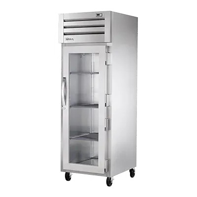 Upgrade your restaurant kitchen with the True Manufacturing STR1F-1G-HC Freezer Reach-In. This top-of-the-line freezer is designed to meet the demands of a busy commercial restaurant. With its sleek stainless steel front and sides, it not only looks great but is also built to last. The glass door with a lock allows you to easily see the contents inside while keeping them secure. The cam-lift hinges ensure smooth and effortless door operation. The digital temperature control allows you to easily adjust and monitor the temperature to keep your food at the perfect level of coldness. The LED interior lights provide excellent visibility, making it easy to find what you need. With its 5" castors, this freezer is easy to move and clean around. Made in the USA, this True Manufacturing freezer is not only reliable but also environmentally friendly, thanks to its R290 Hydrocarbon refrigerant. Upgrade your kitchen today with the True Manufacturing STR1F-1G-HC Freezer Reach-In.