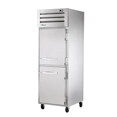 Boost your restaurant's performance with the True Manufacturing STR1R-2HS-HC Reach-In Refrigerator. This top-of-the-line refrigerator is designed to meet the demanding needs of commercial kitchens. With its stainless steel construction, it not only looks sleek but also ensures durability and easy cleaning. The two stainless steel half doors come with locks and cam-lift hinges, providing secure storage for your ingredients and supplies. The digital temperature control allows you to easily adjust and monitor the internal temperature, ensuring your food stays fresh and safe. The LED interior lights illuminate the contents, making it easy to find what you need. Equipped with 5" castors, this refrigerator is easy to move and clean around. Made in the USA, this True Manufacturing refrigerator is not only reliable but also energy-efficient, thanks to its R290 Hydrocarbon refrigerant. Upgrade your kitchen with the True Manufacturing STR1R-2HS-HC Reach-In Refrigerator and experience enhanced efficiency and performance.