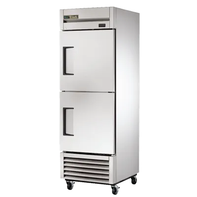 Fuel your restaurant's success with the True Manufacturing T-23-2-HC Refrigerator, Reach-In. This top-of-the-line refrigerator is designed to meet the demanding needs of a commercial restaurant. With its two stainless steel half doors and three adjustable PVC-coated wire shelves, you'll have plenty of space to store all your perishable ingredients. The interior lighting makes it easy to find what you need, while the clear coated aluminum interior with a stainless steel floor ensures durability and easy cleaning. The 4" castors allow for easy mobility, making it convenient to move the refrigerator around your kitchen. Plus, with its use of R290 Hydrocarbon refrigerant, this refrigerator is energy-efficient and environmentally friendly. Made in the USA and certified by cULus and UL EPH Classified, you can trust in the quality and reliability of True Manufacturing. Upgrade your restaurant's refrigeration system with the True Manufacturing T-23-2-HC Refrigerator, Reach-In.