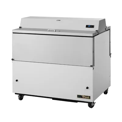 Take your kitchen to the next level with the True Manufacturing TMC-49-DS-SS-HC Milk Cooler / Station. This mobile milk cooler is perfect for commercial restaurant use, offering convenience and efficiency. With its forced-air system and dual-sided stainless steel drop front/hold-open flip-up lids, this cooler ensures optimal temperature control and easy access to your milk crates. The white vinyl exterior and stainless steel interior and floor not only provide durability but also give a sleek and professional look to your kitchen. The cooler comes with three heavy-duty floor racks, allowing you to store and organize your milk crates efficiently. Equipped with a digital thermometer and 4" castors, this cooler is easy to monitor and move around. Made in the USA and certified by cULus and UL EPH Classified, you can trust the quality and reliability of True Manufacturing. Upgrade your kitchen with the True Manufacturing TMC-49-DS-SS-HC Milk Cooler / Station.