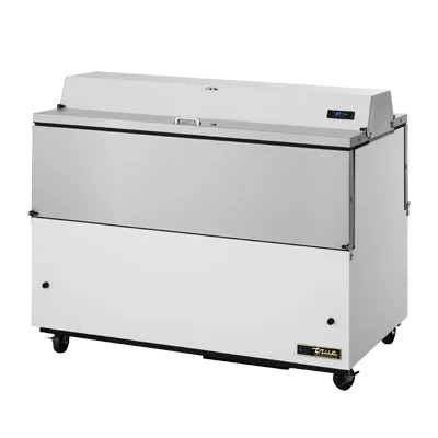 Culinary artistry redefined with True Manufacturing's TMC-58-DS-HC Milk Cooler / Station. This mobile milk cooler is designed to meet the demands of a commercial restaurant, offering convenience and efficiency. With its dual-sided stainless steel drop front/hold-open flip-up lids, accessing and organizing up to 16 crates of milk has never been easier. The locks ensure the safety and security of your inventory. The white vinyl exterior gives it a clean and professional look, while the aluminum interior with a stainless steel floor ensures durability and easy cleaning. The three heavy-duty floor racks provide ample storage space, and the digital thermometer allows for precise temperature control between 33 - 38F. Equipped with 4" castors, this milk cooler is easy to move around the kitchen. Made in the USA, this True Manufacturing milk cooler is cULus and UL EPH Classified, guaranteeing its quality and reliability. Upgrade your restaurant's milk storage with the TMC-58-DS-HC Milk Cooler / Station.