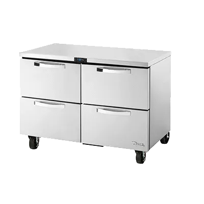Transform your food service with the True Manufacturing TUC-48F-D-4-HC~SPEC3 Freezer. This undercounter reach-in freezer is designed to meet the demands of a commercial restaurant setting. With its SPEC Package 3, it offers a range of features that ensure optimal performance and convenience. The freezer is constructed with a durable 16-gauge stainless steel top, sides, and back, as well as a stainless steel interior, making it easy to clean and maintain. It comes with four drawers, each capable of accommodating a 12" x 18" x 6" pan (not included), providing ample storage space for your ingredients. The electronic temperature control with a digital display allows for precise temperature management, ensuring your food stays at the ideal -10 F. The freezer is also equipped with 5" castors for easy mobility and uses R290 Hydrocarbon refrigerant, making it energy-efficient and environmentally friendly. Trust True Manufacturing to deliver a high-quality freezer that will enhance your restaurant's efficiency and productivity.
