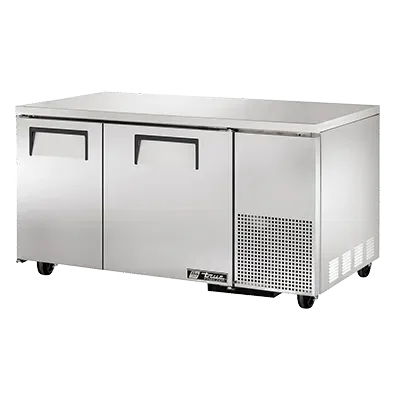 Realize kitchen dreams with the True Manufacturing TUC-60-32F-HC Freezer. This undercounter reach-in freezer is designed to meet the demands of a commercial restaurant, providing ample storage space while saving valuable floor space. With its stainless steel top and sides, this freezer not only looks sleek but also ensures durability and easy cleaning. The two stainless steel doors and four PVC coated wire shelves offer convenient access and organization for your frozen goods. The aluminum interior with a stainless steel floor guarantees hygiene and longevity. Equipped with 5" castors, this freezer can be easily moved for cleaning or rearranging. The side mount design and R290 Hydrocarbon refrigerant ensure efficient cooling and energy savings. Made in the USA, this True Manufacturing freezer is cULus and UL EPH Classified, assuring you of its quality and reliability. Upgrade your kitchen with the TUC-60-32F-HC Freezer and experience the convenience and efficiency it brings to your restaurant operations.