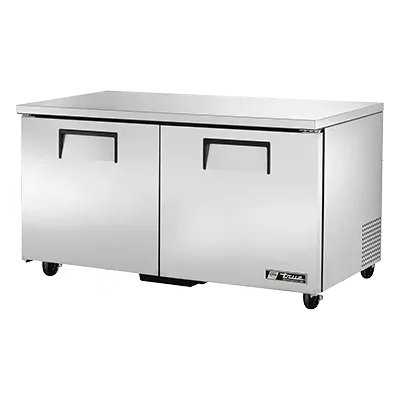 Optimize your kitchen efficiency with the True Manufacturing TUC-60-HC Refrigerator. This undercounter reach-in refrigerator is designed to meet the demands of a commercial restaurant setting. With its stainless steel top and sides, it not only looks sleek but also ensures durability and easy cleaning. The two stainless steel doors provide easy access to the spacious interior, which features four shelves and an aluminum interior with a stainless steel floor. The temperature range of 33-38 F ensures that your ingredients stay fresh and properly stored. The 5" castors make it easy to move the refrigerator around for cleaning or rearranging. Made in the USA, this refrigerator is not only reliable but also energy-efficient, thanks to the R290 Hydrocarbon refrigerant and 1/4 HP compressor. Upgrade your kitchen with the True Manufacturing TUC-60-HC Refrigerator and experience improved organization and efficiency.