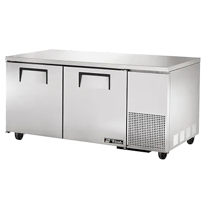 Unleash your kitchen's potential with the True Manufacturing TUC-67F-HC Freezer. This undercounter reach-in freezer is designed to meet the demands of a busy commercial restaurant. With its stainless steel top and sides, it not only looks sleek but also ensures durability and easy cleaning. The two stainless steel doors provide easy access to the spacious interior, which features four shelves for organized storage. The aluminum interior with a stainless steel floor is not only hygienic but also resistant to corrosion. The 5" castors make it easy to move the freezer around for cleaning or rearranging. Powered by a 1/2 HP compressor, this freezer maintains a temperature of -10F, keeping your ingredients and frozen goods fresh and ready for use. With its energy-efficient R290 Hydrocarbon refrigerant, this freezer not only saves on energy costs but also helps reduce environmental impact. Trust True Manufacturing, a reputable brand known for its quality and reliability. Upgrade your kitchen with the True Manufacturing TUC-67F-HC Freezer and experience the difference it makes in your restaurant's efficiency and productivity.