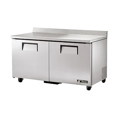 Cook with confidence and flair with the True Manufacturing TWT-60-HC Refrigerated Counter. This two-section work top refrigerator is designed to meet the demands of a busy commercial restaurant. The stainless steel top with rear splash provides a durable and easy-to-clean surface, while the front and sides add a sleek and professional look to your kitchen. With two stainless steel doors and four shelves, you'll have plenty of storage space for all your ingredients and prepared dishes. The aluminum interior with a stainless steel floor ensures optimal temperature retention and easy maintenance. Equipped with 5" castors and a rear mount, this refrigerator is easy to move and position wherever you need it. Powered by a 1/4 HP compressor and using R290 Hydrocarbon refrigerant, this unit is energy-efficient and environmentally friendly. Trust in the quality and reliability of True Manufacturing, a trusted name in commercial refrigeration. Upgrade your kitchen with the True Manufacturing TWT-60-HC Refrigerated Counter and experience the difference it makes in your restaurant's efficiency and productivity.