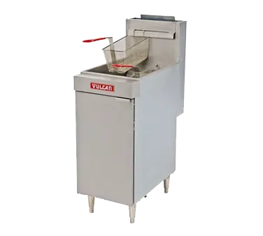 Serve with pride with the Vulcan LG500 Fryer, Gas, Floor Model, Full Pot. This high-quality fryer from Vulcan is designed to meet the demands of a busy commercial restaurant kitchen. With a 65-70 lb capacity, this free-standing fryer can handle large quantities of food, allowing you to serve your customers quickly and efficiently. The millivolt thermostat controls ensure precise temperature regulation, while the twin baskets allow you to fry different items simultaneously. The stainless steel construction of the front top, door, and fry tank not only provides durability but also makes cleaning a breeze. With a powerful 150,000 BTU burner, this fryer delivers fast and consistent results. CSA Star, CSA Flame, and NSF certifications guarantee its safety and quality. Upgrade your kitchen with the Vulcan LG500 Fryer and experience the difference in performance and reliability.