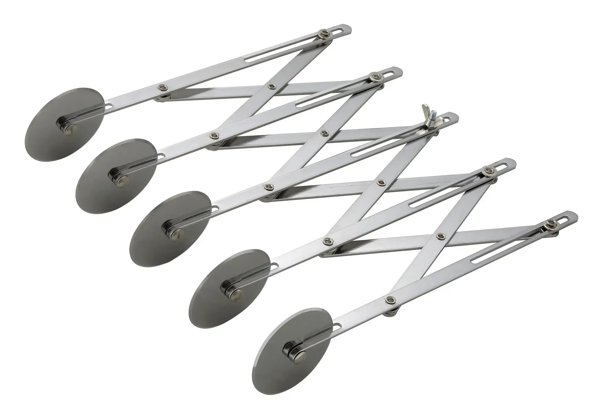 Ideal for professional settings, the Winco Dough Divider is an essential tool for any restaurant kitchen. This versatile device features five adjustable wheels, allowing you to customize the width of your dough cuts from 34 to 4-38. Crafted from high-quality stainless steel, the Winco Dough Divider ensures durability and longevity, making it a reliable addition to your culinary arsenal.