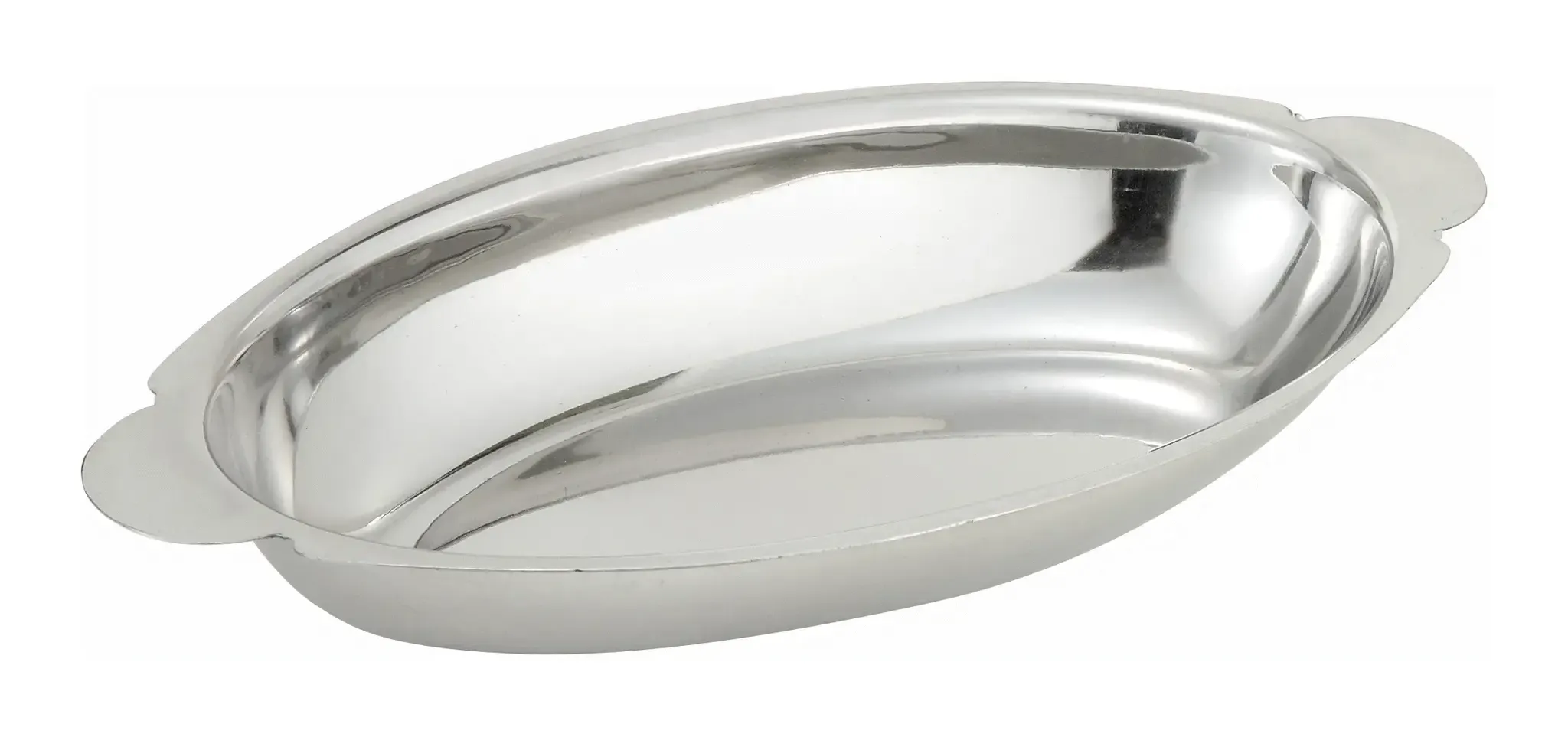 Bring versatility and style to the kitchen with the Winco Au Gratin Dish. This 12 oz. oval stainless steel dish, model ADO-12, is the perfect addition to any restaurant setting, offering both functionality and elegance. Crafted from high-quality stainless steel, this dish ensures durability and a sleek, professional appearance that complements any table setting.
